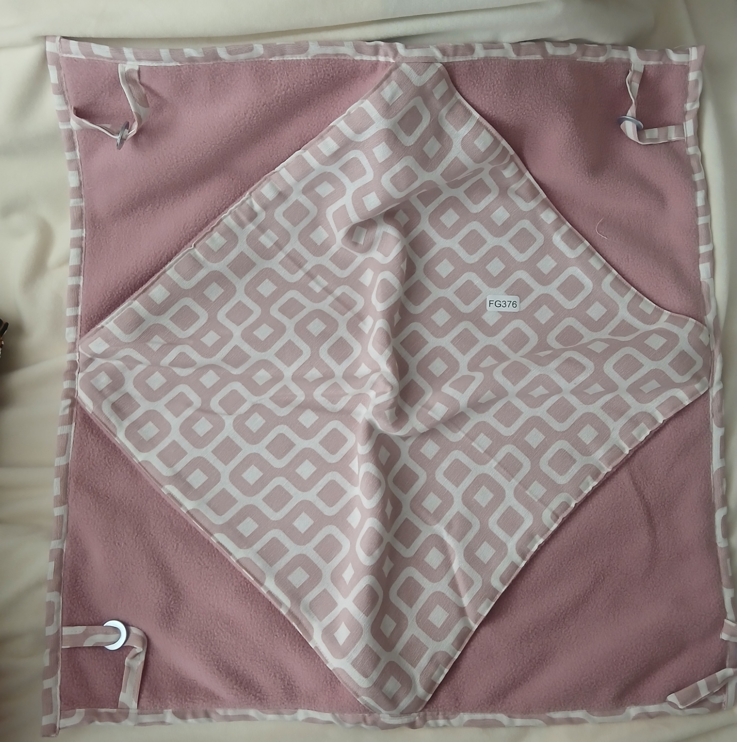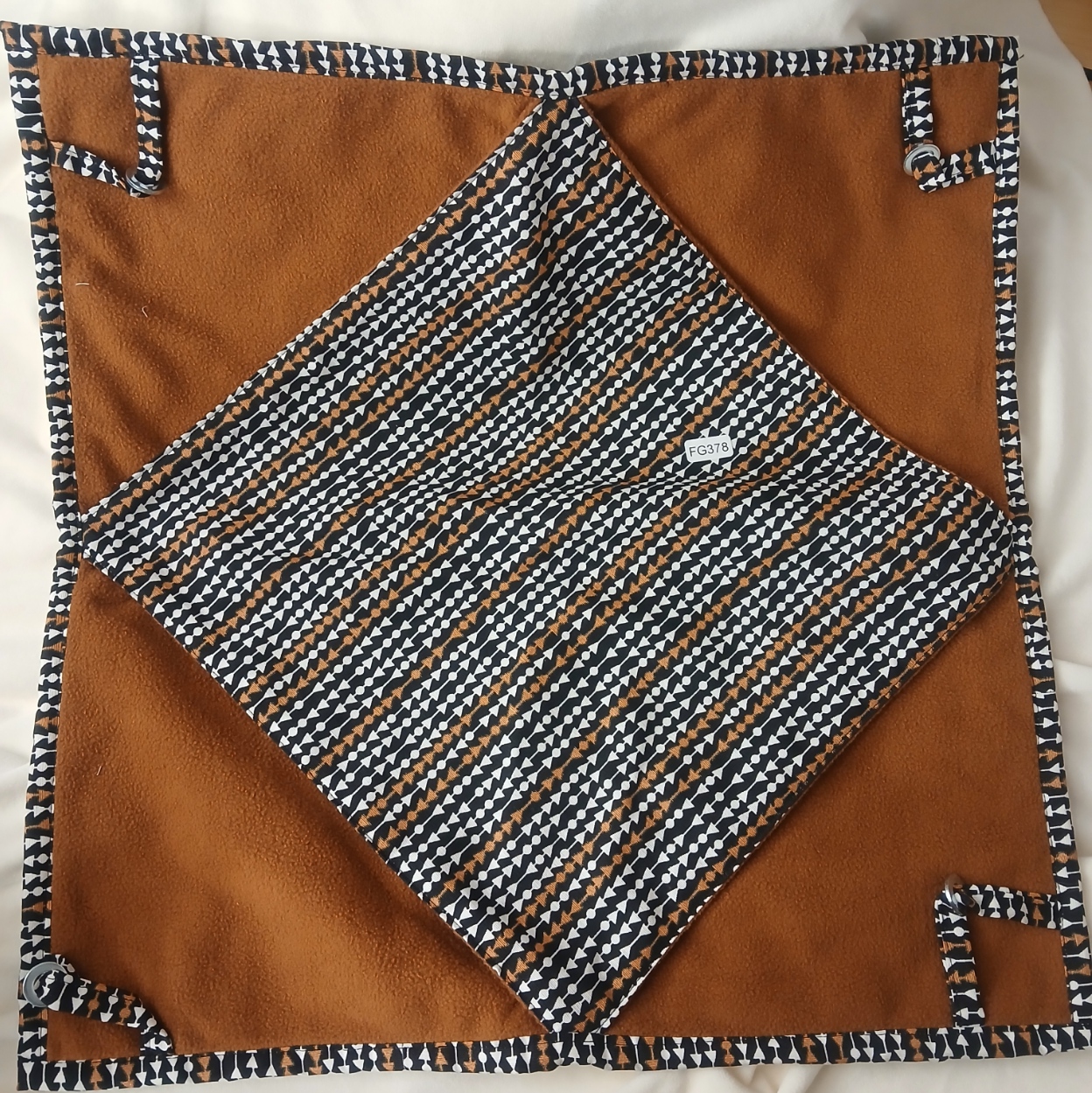 Deze hangmat is gemaakt van stevig katoen en gevoerd met zachte fleece-stof.
