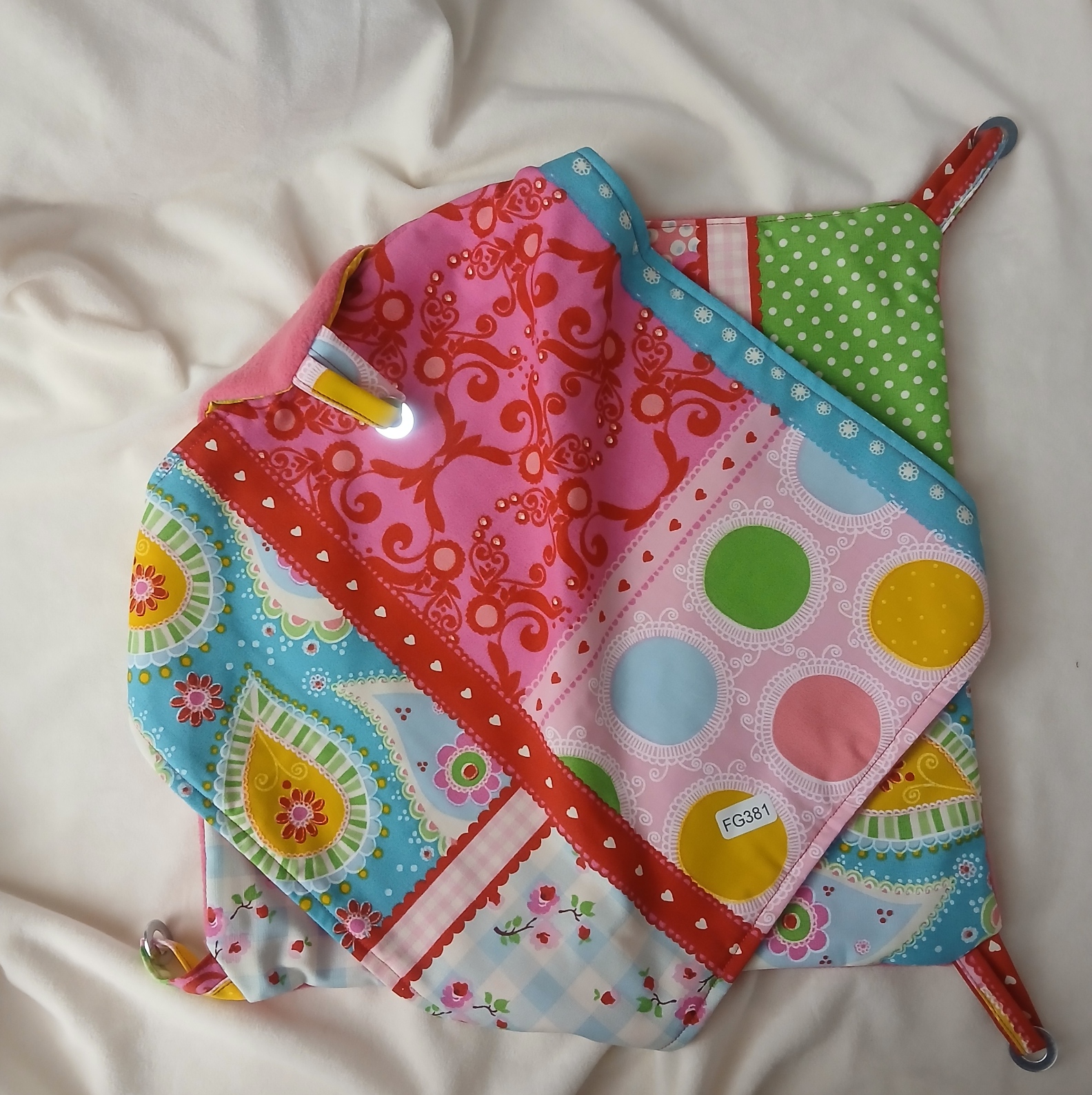 40cm x 40cm De maten kunnen iets afwijken ivm de maten van de stof en omdat het handwerk is.