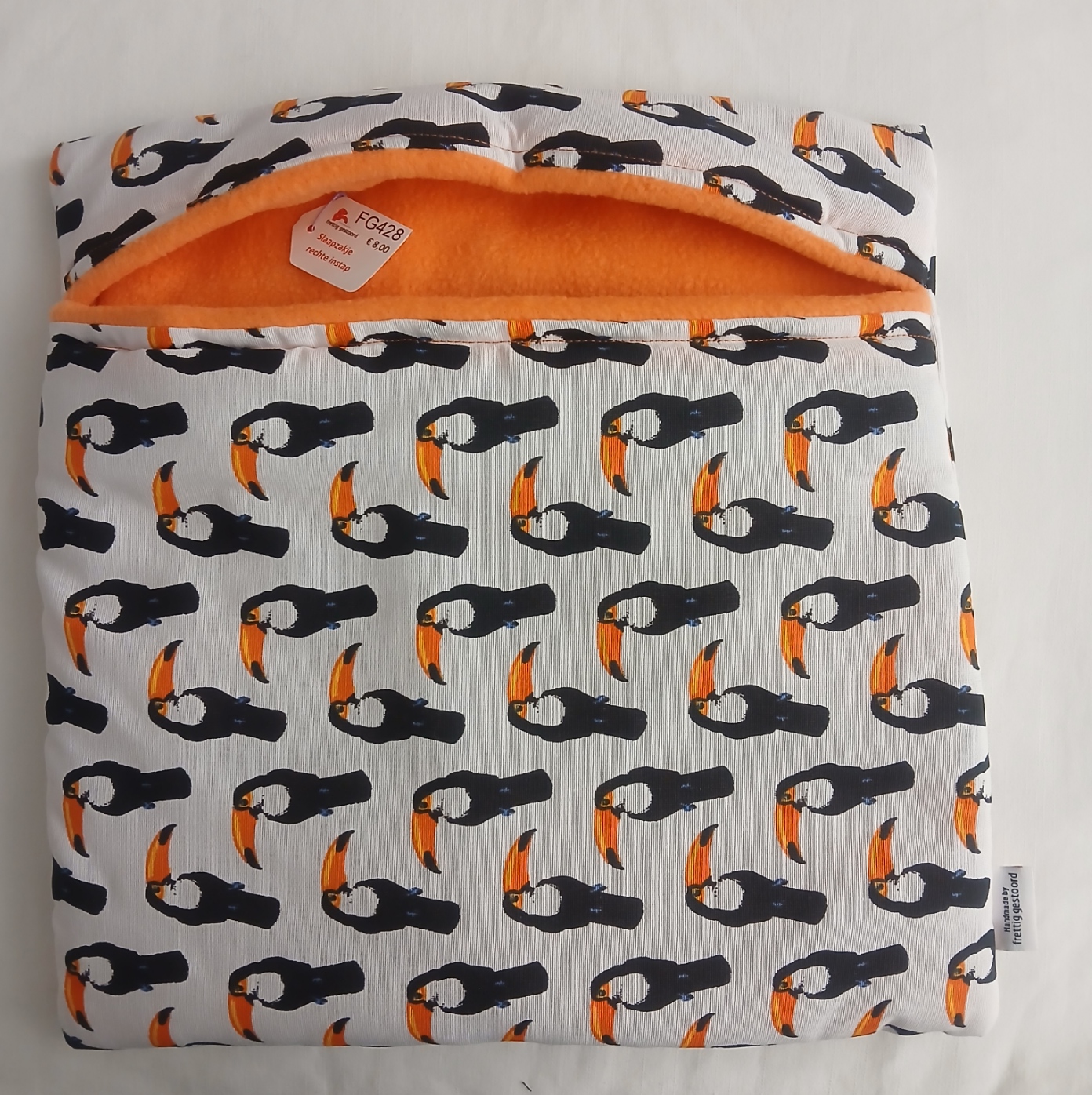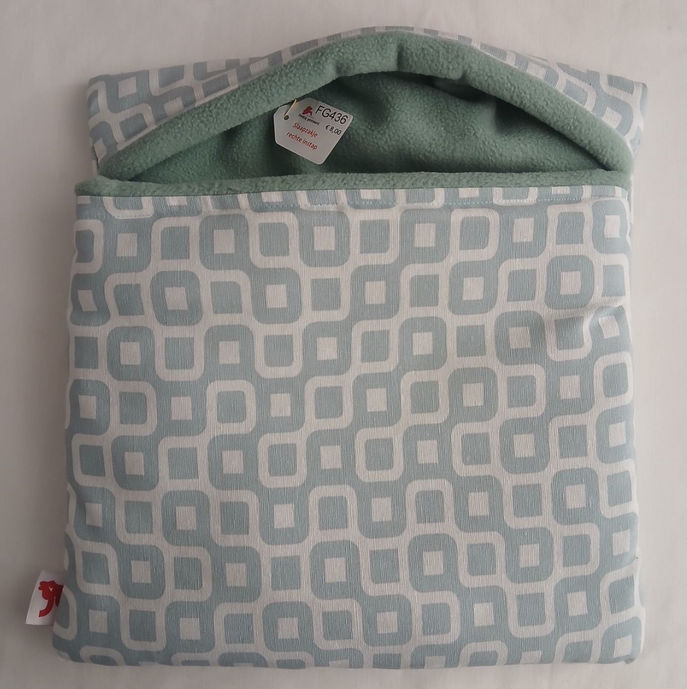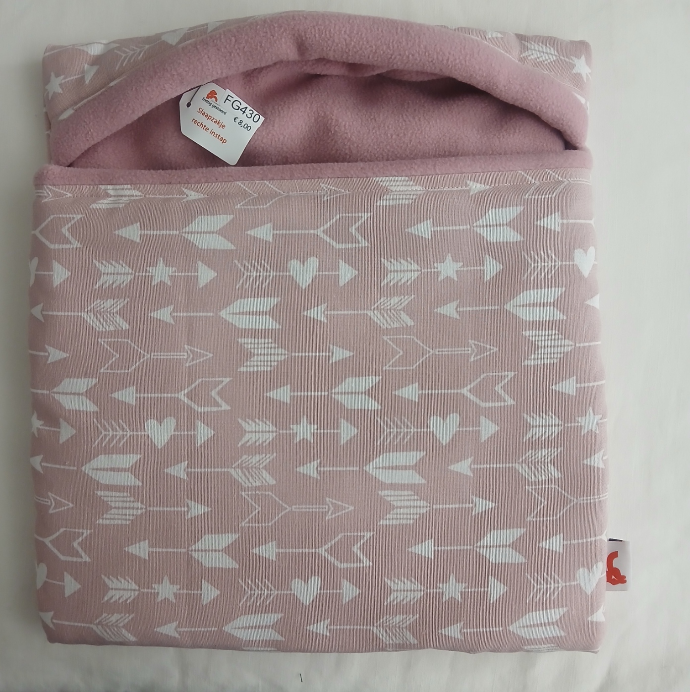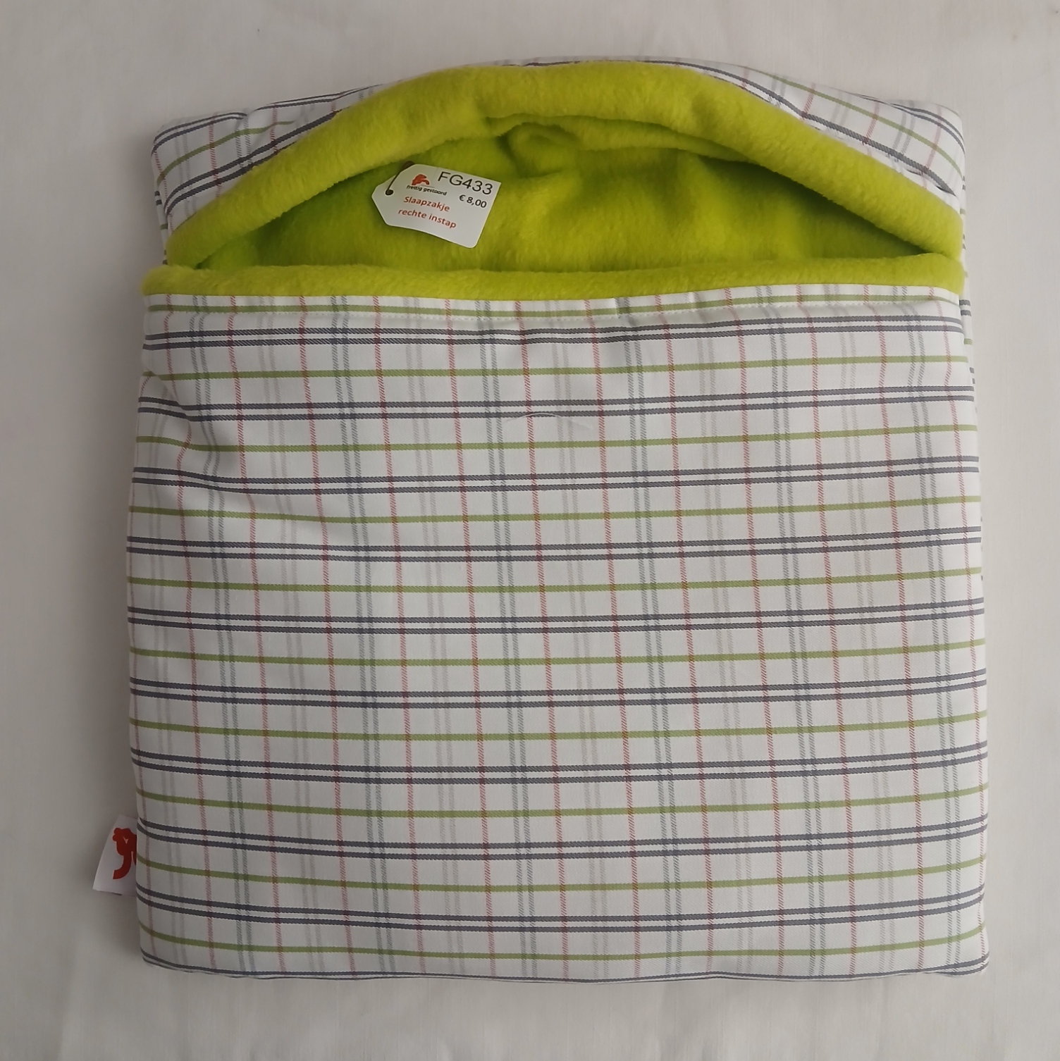 Dit slaapzakje is gemaakt van stevige stof (veelal dik katoen, op een enkeling na) en gevoerd met fleecestof.